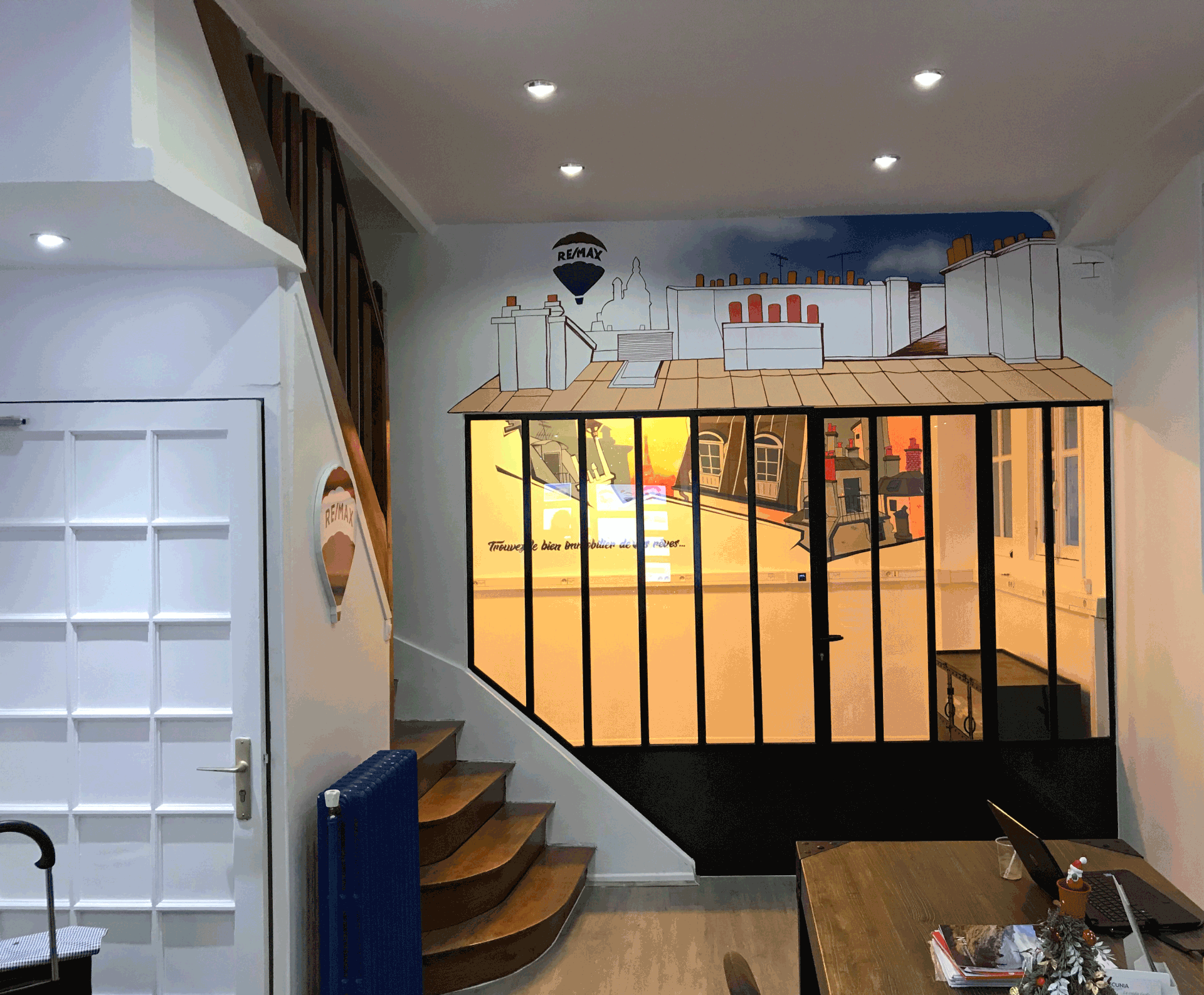 Habillage en peinture des murs de l'agence immobilière RE/MAX dans le 18ème arrondissement de Paris.